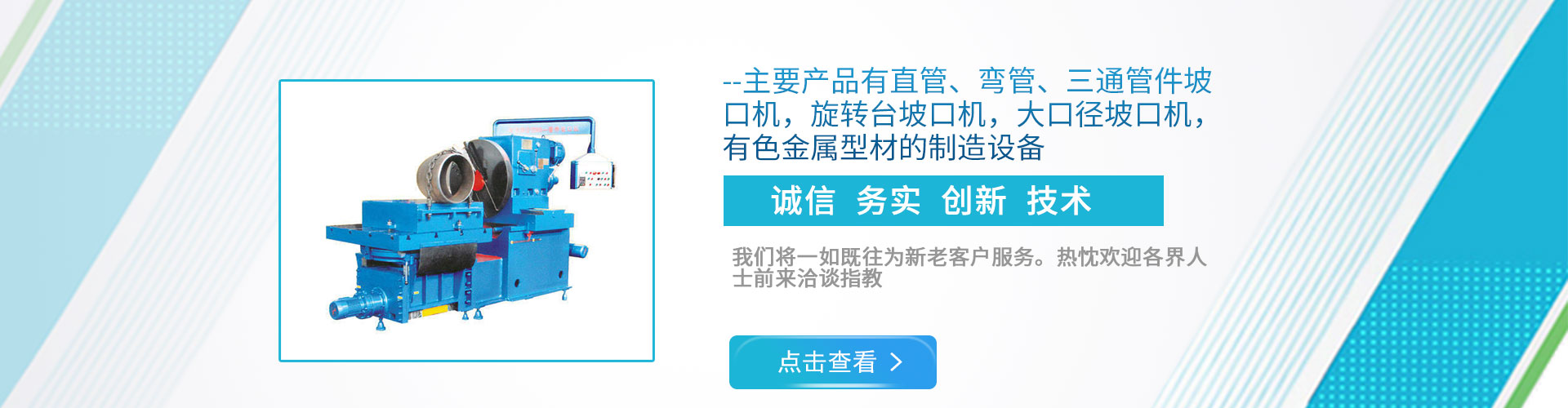 公司現(xiàn)下轄兩個分廠,一分廠主營電動管道坡口機和焊接設(shè)備,適用于造船、電力工程安裝、石油、化工、鍋爐廠、冶金以及鋼鐵行業(yè);